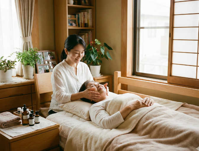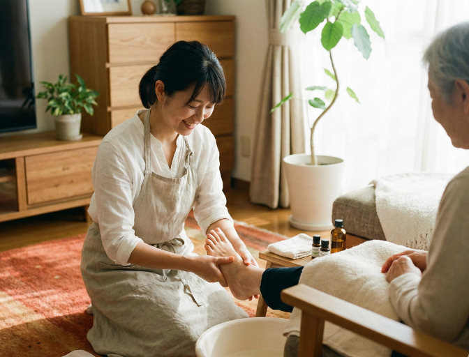 ご自宅や施設で、リラックスした環境の中でサービスを受けていただけます。