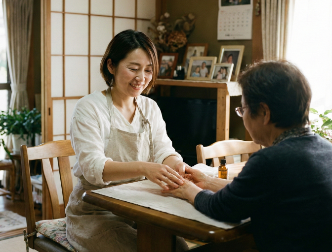 施術の合間や終了後に、何気ない会話を交わす時間も、暮らしの大切な一部です。